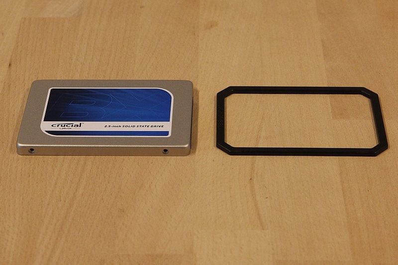 Alors qu’il faut débourser en moyenne 500 euros pour s’offrir un SSD de 1 To, Crucial casse les prix avec un modèle d’entrée de gamme vendu moins de 400 euros : le BX100. À tel point que Samsung a dernièrement fait passer le prix de son 840 EVO 1 To de 600 à… 400 euros. La différence majeure entre les deux modèles concerne le type de mémoire flash. Samsung utilise de la mémoire TLC (Triple Level Cell), en théorie moins performante que la mémoire MLC (Multi Level Cell) employée par Crucial, mais compense ce problème par un système de mémoire cache particulièrement efficace. Modèle « low cost » oblige, la boîte contient le SSD et un seul accessoire : un cadre en plastique pour augmenter son épaisseur de 7 mm afin de le placer dans un logement de 9,5 mm, encore fréquent dans les ordinateurs portables. En revanche, il n’y a pas de berceau 3,5 pouces pour l’installer dans une machine de bureau.