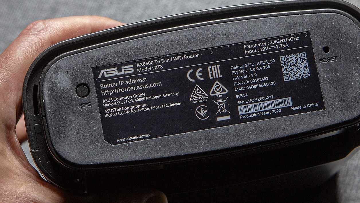En plus de l’alimentation, on trouve ainsi un interrupteur, quatre ports Ethernet, dont trois Gigabit et un dernier 2,5 Gigabit pour la connexion à votre box. Ce sera parfait si vous êtes l’heureux utilisateur d’une box qui dépasse le Gigabit. Si ce n’est pas le cas, vous saurez au moins que votre routeur Asus n’est pas le maillon faible de votre réseau. Enfin, toujours à l’arrière, on trouve un port USB 3.1 Gen 1. N’oublions pas un minuscule bouton WPS sous le socle de chaque routeur, qui vous permettra de connecter un appareil compatible d’une simple pression.