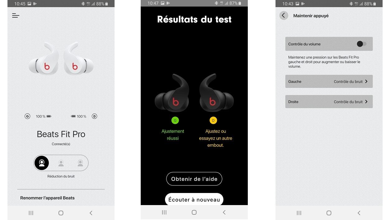Une différence importante entre les Beats Fit Pro et les AirPods d’Apple est leur fonctionnement sous Android. En effet, les utilisateurs de l’OS de Google peuvent télécharger gratuitement l’application Beats alors qu’aucune appli n’est disponible pour les AirPods. Ce programme comporte deux fonctions très utiles.
