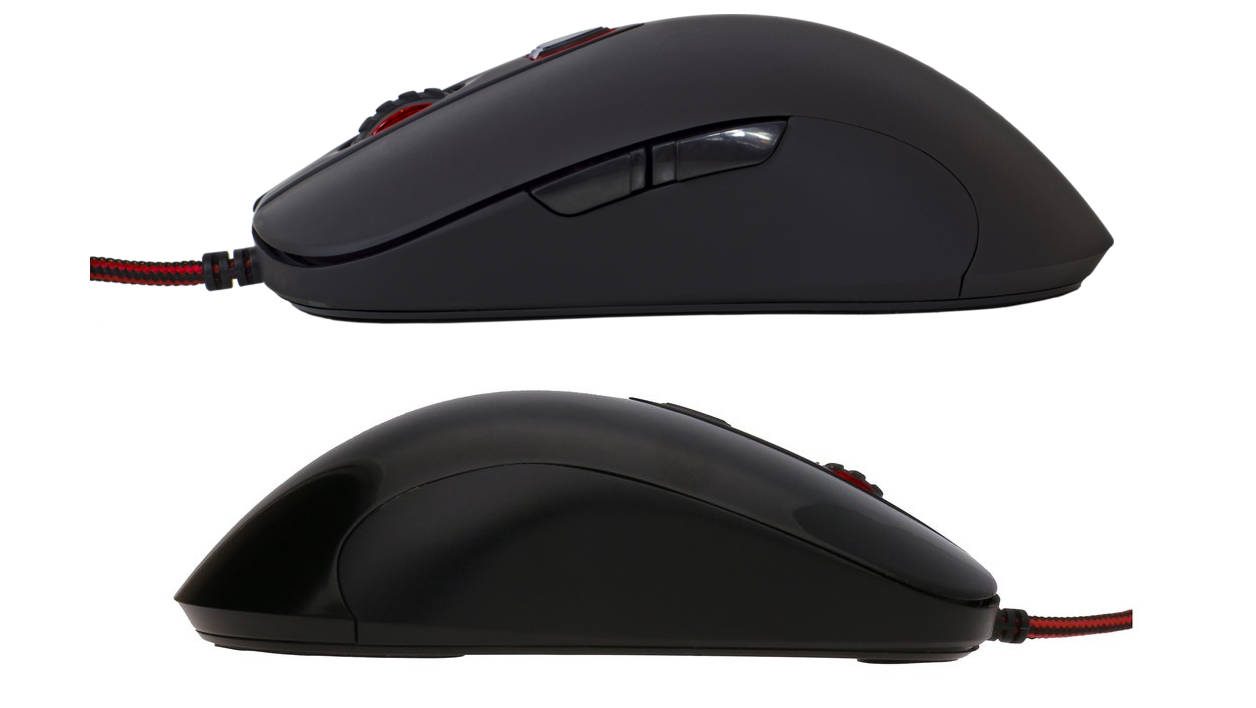 Si vous vous attendez à des formes alambiquées et des subtilités ergonomiques, vous allez être déçus. En effet, la DM1 S Pro de Dream Machines est une souris à la conception assez classique. Dessinée pour les droitiers, sa prise en main est intuitive, le dos de la souris venant de loger tout seul dans le creux de la paume. Le pouce de la main trouve bien ses marques, et repose sur les deux boutons latéraux qui viennent compléter les clics gauche et droit ainsi que celui de la molette crantée. A noter, notre version de test était couverte de plastique noir mat mais un modèle brillant est aussi disponible.