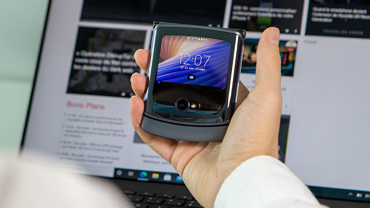 Durant nos quelques jours avec le smartphone, nous avons été surpris par le nombre de personnes qui nous ont posé des questions sur le razr 5G. Leur point commun ? L’appareil leur rappelle « un vieux téléphone ». Peu se souviennent de son nom, mais tous sont intrigués par ce drôle d’engin qui claque lorsqu’on le referme. On sent d’ailleurs que Motorola a particulièrement soigné cette expérience. Aucun smartphone pliant ne se plie ou se déplie aussi facilement que ce razr 5G. Il suffit de donner un léger coup avec le pouce pour l’ouvrir et de presser son dos avec l’index pour le refermer (on maîtrise rapidement ce geste). L’écran pivote très rapidement et la charnière fait un bruit identique à celui du vieux téléphone à clapet. Cette sensation est très plaisante. On adore aussi raccrocher avec cet appareil, on se croirait dans un film américain.