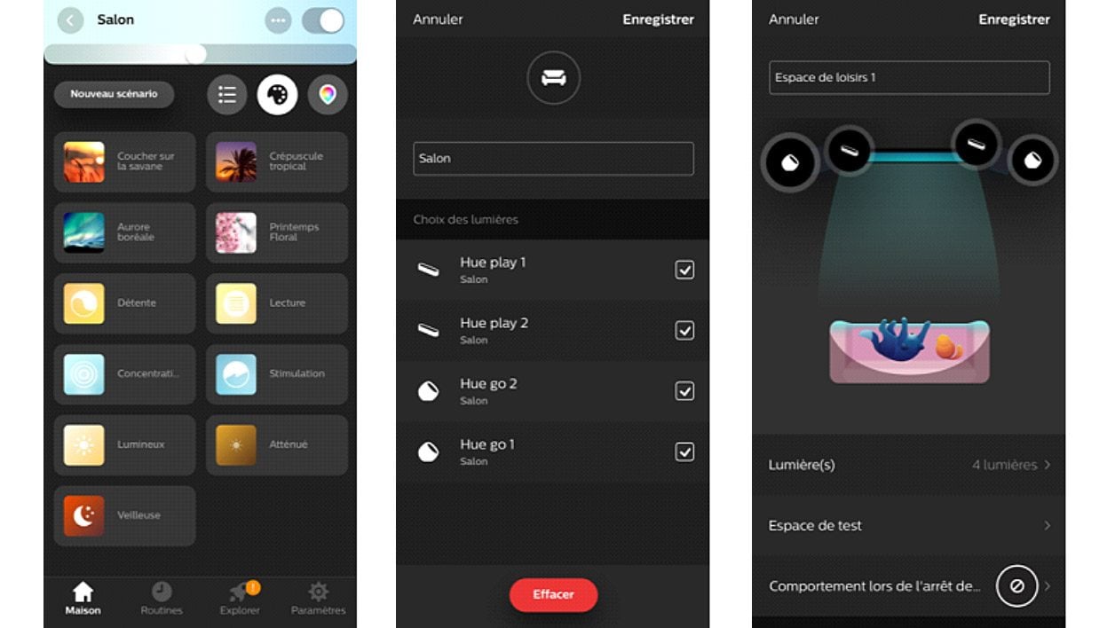 Certes, l’application Hue Sync est très bien pensée, facile à utiliser et complète de surcroît, mais le fait de devoir jongler sans cesse entre « Hue Sync » et « Hue » est une hérésie puisqu’il s’agit in fine de commander les mêmes accessoires.