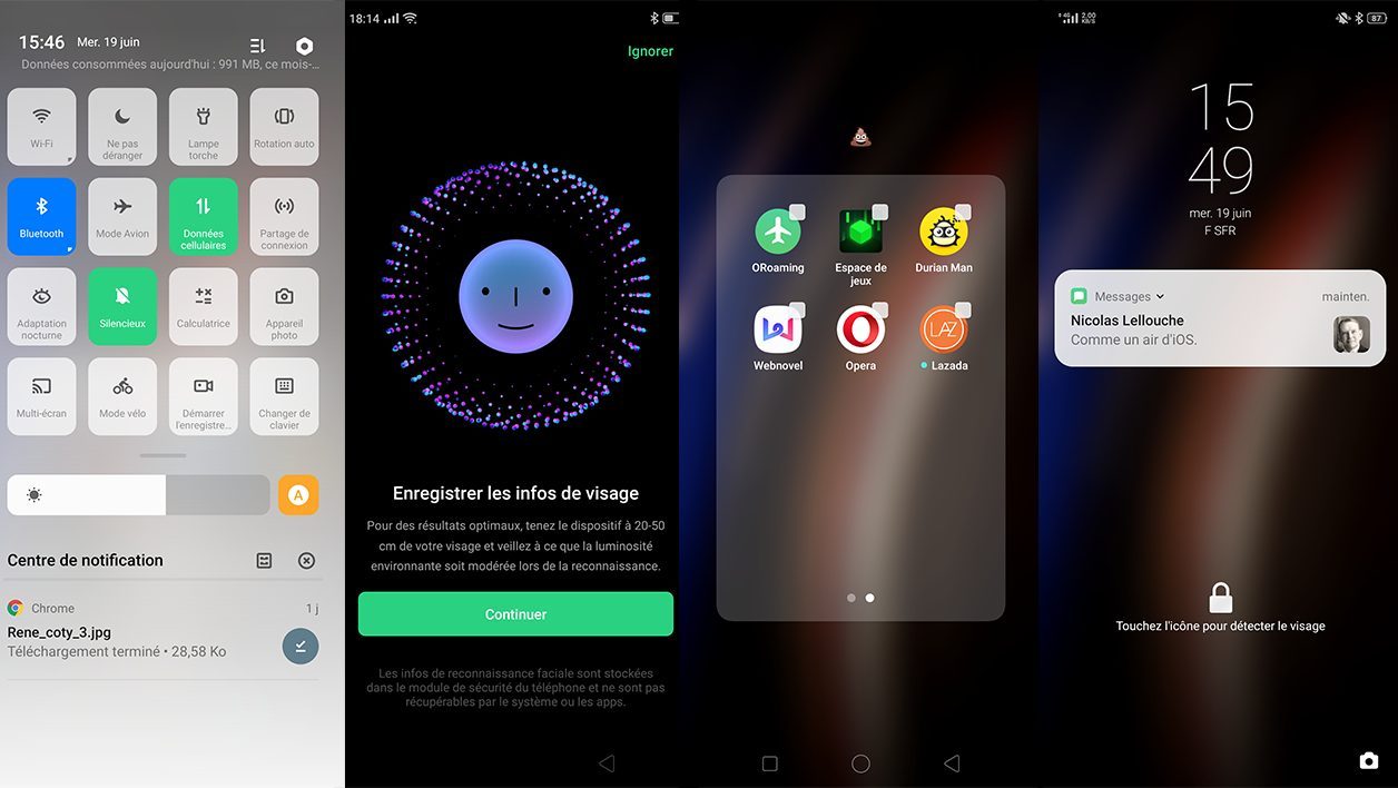 Où se cache le défaut ? Malheureusement, il y en a bien un. Le logiciel du Realme 3 Pro n’a pas réussi à nous convaincre. En attendant la finalisation de sa propre surcouche (prévue pour la fin d’année), la marque utilise ColorOS, le système d’Oppo. Mauvaise copie d’iOS, cet environnement est rempli de trop nombreuses options, d’applications pré-installées, de fautes de frappe et n’est pas toujours très élégant. Les logiciels intégrés pas défaut, comme l’application Messages, sont à des années lumières de la qualité d’un Android Messages. Il est évidemment possible de les remplacer mais on reste déçu par cette première mauvaise impression. À côté, la surcouche MIUI de Xiaomi offre une expérience bien plus agréable, bien que parfois elle aussi surchargée.