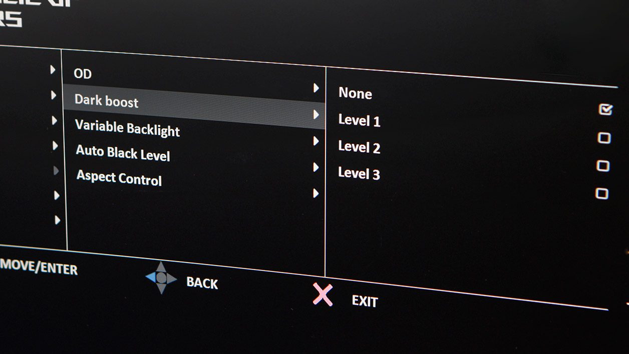 Le mieux, pour se rendre compte des incidences de chaque paramètre est d’afficher une image fixe, riche en couleur et contraste et de s’amuser à activer/désactiver les options à l’aide des boutons et du petit joystick dont nous parlions plus haut. Pour le prix, Asus aurait tout de même pu se fendre de penser à fournir une petite télécommande, comme le faisait Eizo sur ses moniteurs de gaming. Car, bien que les boutons de réglages soient aisément accessibles, pouvoir jouer sur les différents paramètres, depuis sa chaise de bureau, avec la dalle bien en face des yeux, est tout de même bien plus pratique. Mais revenons-en à nos conseils.