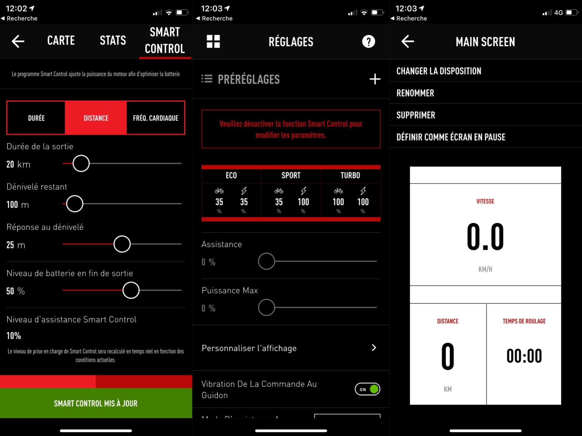 L’autre aspect essentiel de l’application concerne la personnalisation de l’écran. En effet, l’afficheur « Mastermind » peut être paramètré en fonction de goûts de l’utilisateur. À lui de choisir quelles données afficher (vitesse, assistance, autonomie, cadence) et comment.