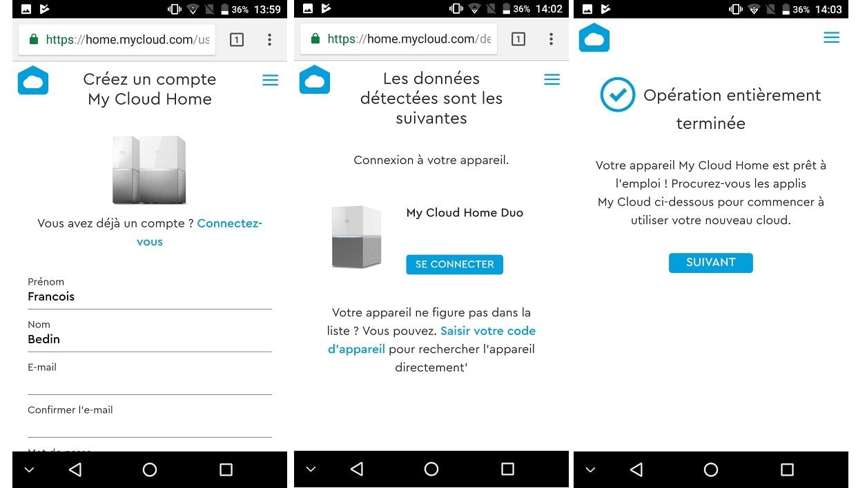 La deuxième étape consiste à se connecter au même réseau que le My Cloud Home Duo avec un ordinateur, une tablette ou un smartphone, lancer le navigateur Internet et taper l’adresse mycloud.com/hello. Après la création d’un compte, nécessaire pour l’accès distant, l’assistant Web détecte automatiquement le NAS et, pour les appareils mobiles, propose de télécharger l’appli pour iOS et Android. On ne peut pas faire plus simple !
