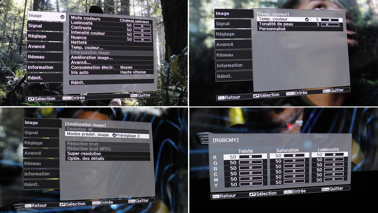 A une image sublime s’ajoutent toutes les spécificités haut de gamme qui savent se faire apprécier. Cela commence par la qualité des menus. Nous aurions apprécié qu’Epson leur apporte un petit « rajeunissement » mais nous reconnaissons volontiers que le niveau de détails et le bon agencement des fonctions permettent à la fois de s’y faire très rapidement, mais aussi de peaufiner facilement les réglages si on le souhaite.