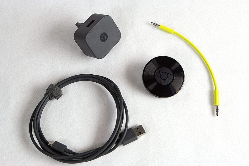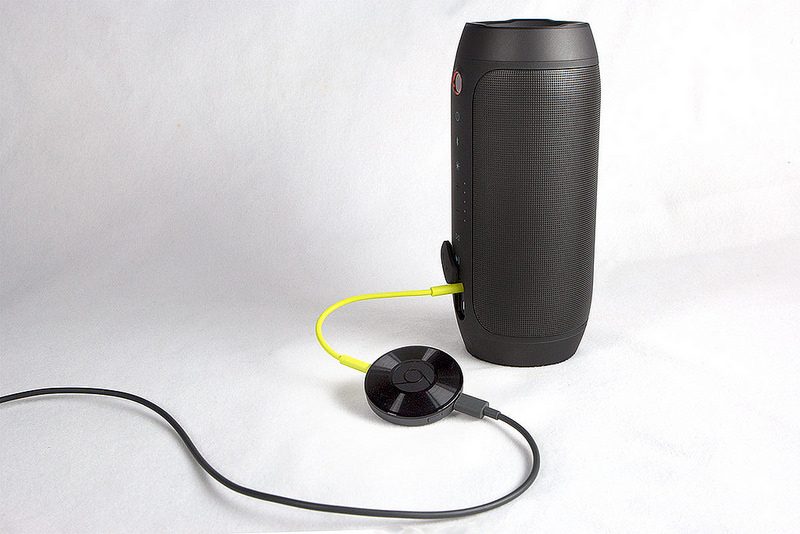 Vous disposez déjà d’une chaîne Hi-Fi, d’une enceinte uniquement Bluetooth ou de haut-parleurs actifs ? Il est possible de leur ajouter facilement une fonction Wi-Fi pour y diffuser de la musique sans-fil grâce au nouveau boîtier de Google. Pour installer le Chromecast Audio, il suffit de le brancher à l’entrée auxiliaire d’une chaîne ou d’un ampli via un jack 3,5 mm. Il est alimenté par un cordon 5V similaire à celui des smartphone, il faut donc veiller à disposer d’une prise libre.