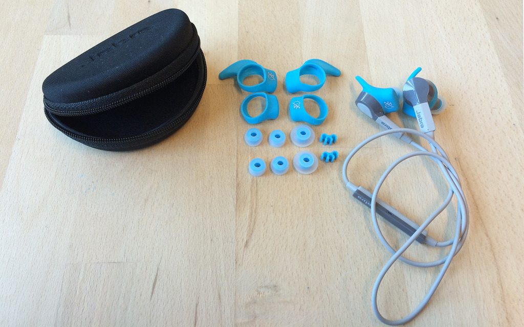 Pour que les écouteurs tiennent fermement dans l’oreille, Jabra livre des contours et des embouts en silicone à ajuster selon la morphologie. Autre fonction de ces petits accessoires, assurer l’isolation du casque pour mettre les morceaux de musique en valeur. Oui, le son est étonnamment bon et dynamique pour un équipement de ce gabarit. La tenue en fréquence est vraiment bonne, bien qu’un peu juste dans les aigus. Rien d’irrémediable toutefois puisqu’avec un bon égaliseur, on retrouve les hautes fréquences manquantes. En outre, la dynamique est aussi au rendez-vous, le son est assez « punchy » et la spatialisation, étonnante. On croirait parfois courir avec l’artiste entrain de chanter juste à côté de soi.
