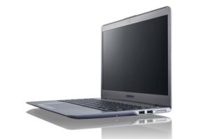 Samsung ne sort pas un mais deux ultrabooks. Des versions de 13,3 et 14 pouces. Si le premier format est usuel, le second l’est bien moins dans cette famille de PC portables. Le constructeur coréen prend quelques libertés supplémentaires avec les standards imposés par Intel. En effet, le SSD est ici remplacé par un disque dur classique sur les deux machines. Cette différence – assumée – serait la résultante d’une longue enquête menée auprès des consommateurs pour qui, finesse et grande capacité de stockage doivent coexister pour qu’un PC trouve grâce à leurs yeux. Le NP530U3B-A02FR, le petit 13,3 pouces, est le premier à passer entre nos mains. Voyons s’il fait mieux que le HP Folio 13 ou le Portégé Z830 de Toshiba.