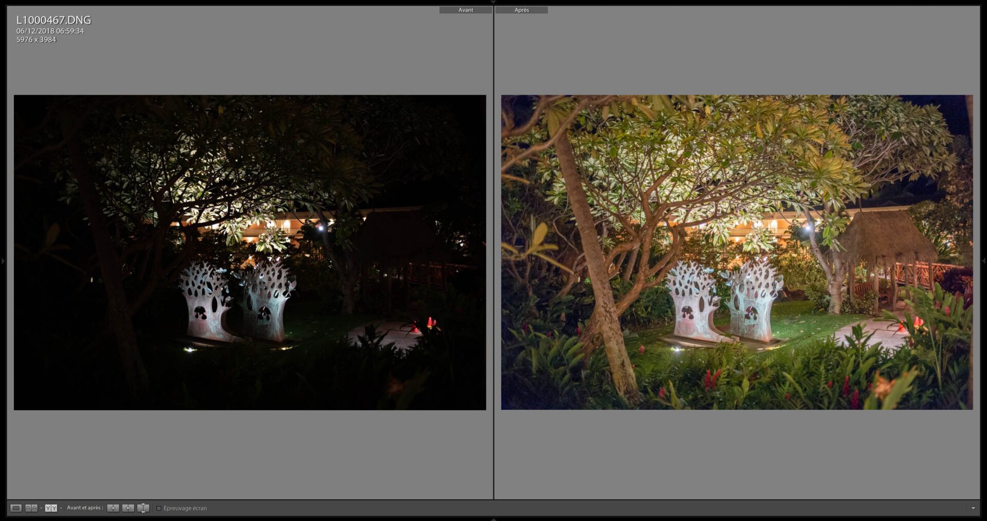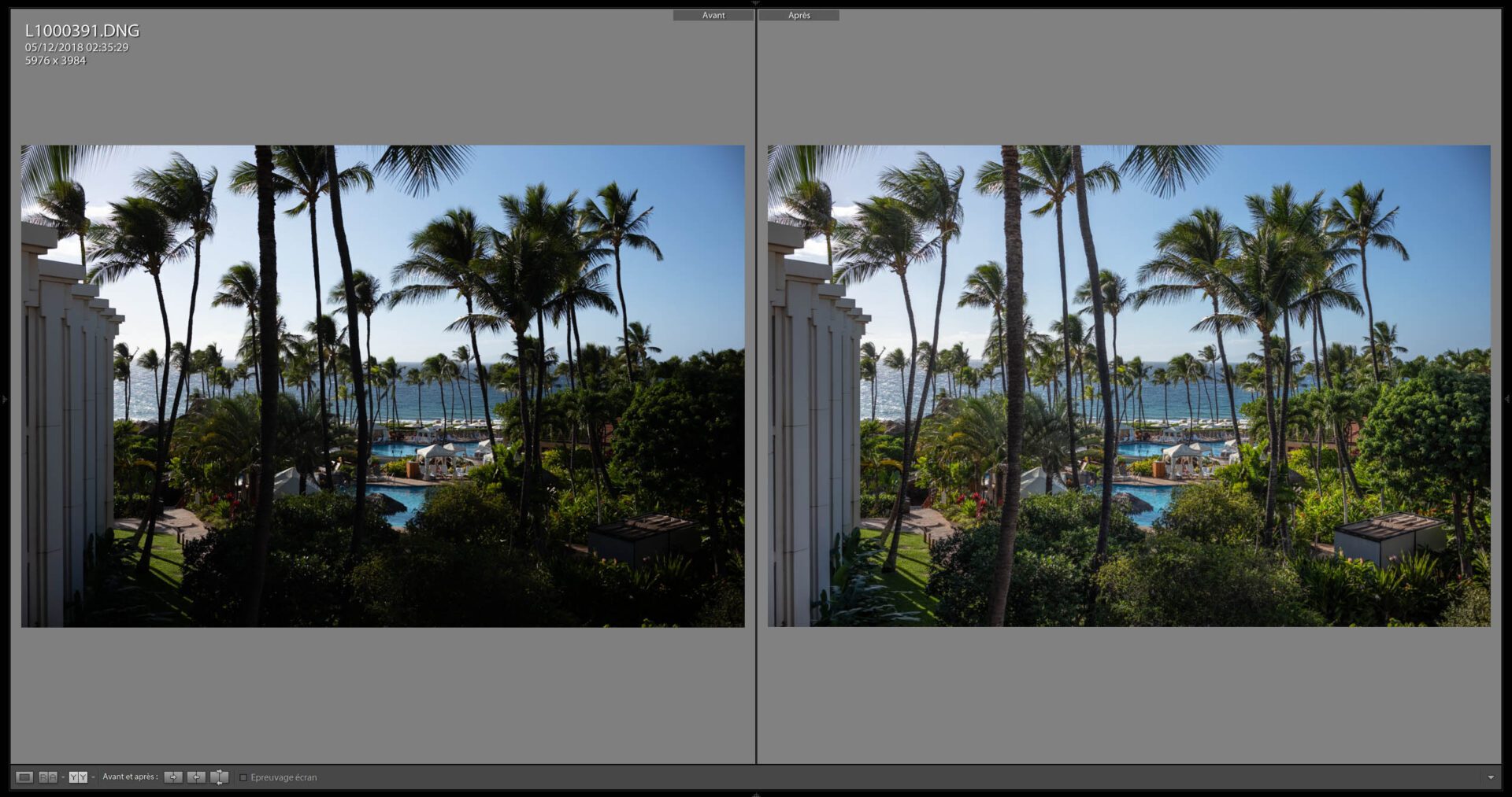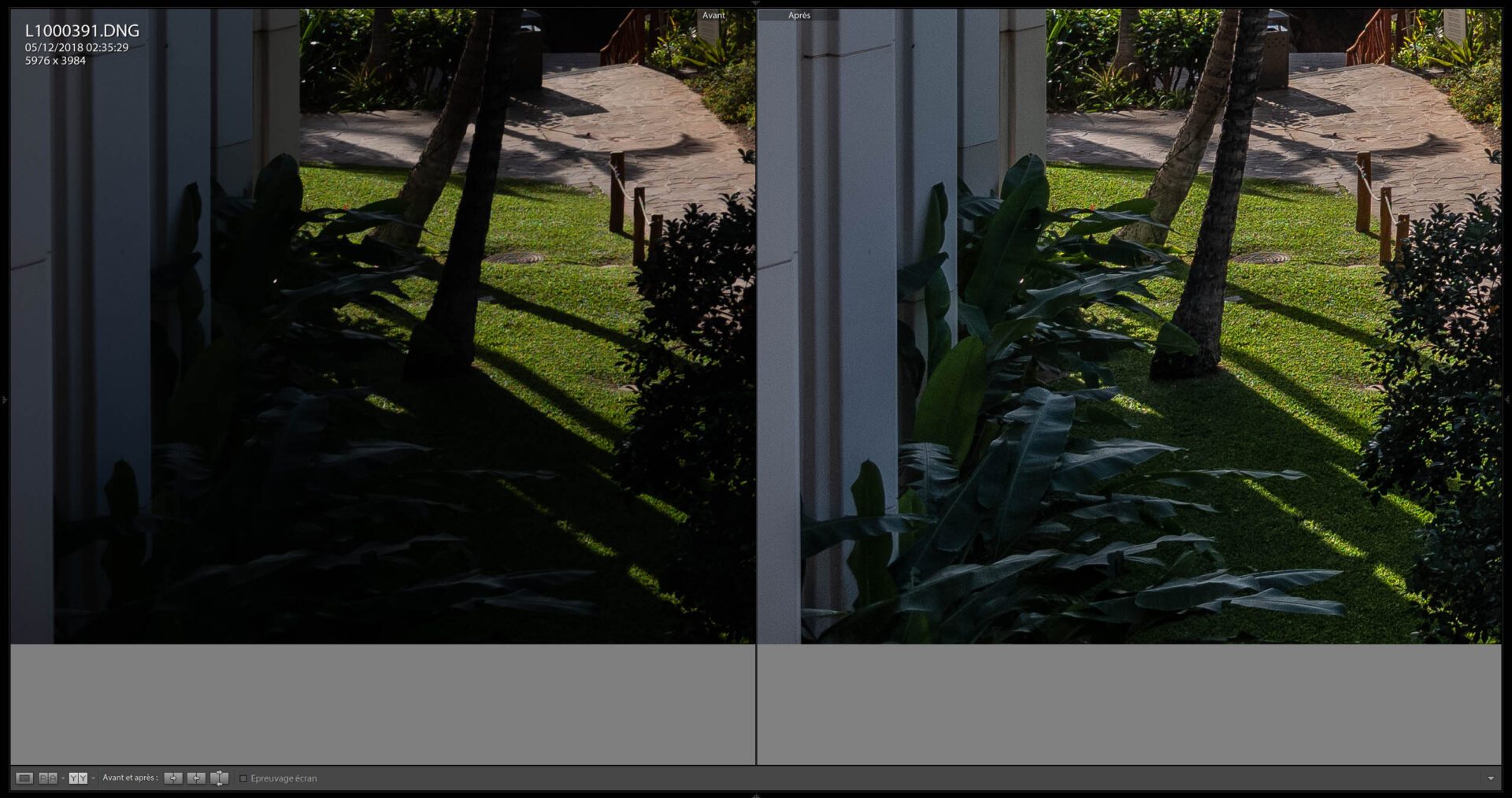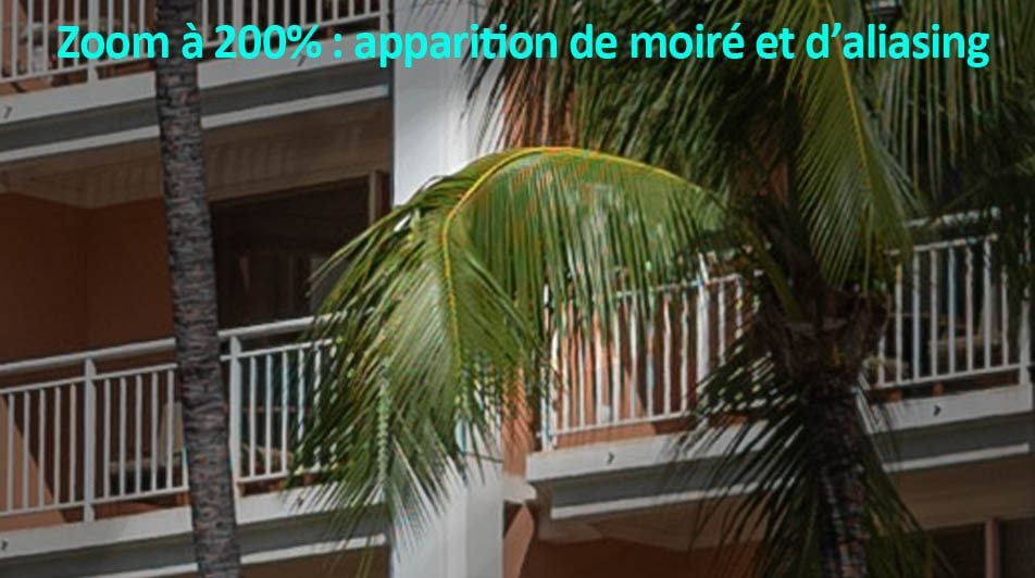Attention cependant, l’absence de filtre passe-bas augmente les risques de moiré sur les motifs répétitifs ainsi que des artéfacts d’aliasing (« effet d’escalier ») sur les détails les plus fins – comme ici sur les feuilles de palmier.