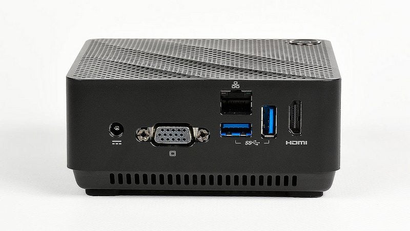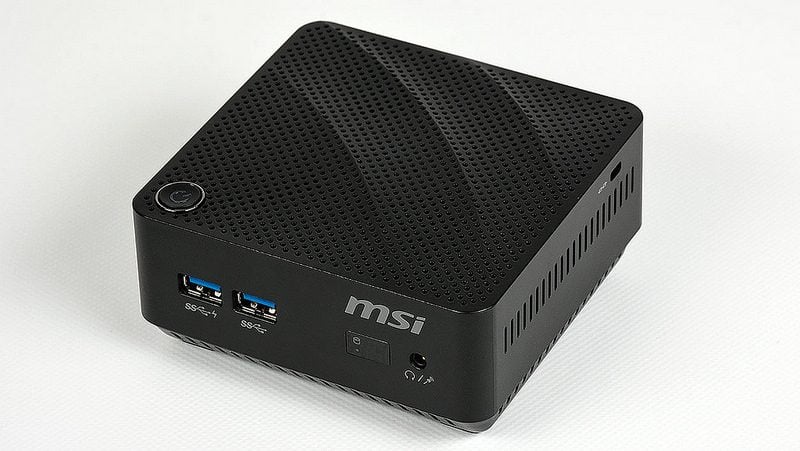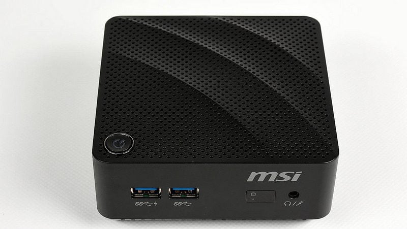 Ce tout petit PC Cubi de MSI (12 x 11 x 4 cm) tient dans la main et se révèle plutôt bien conçu. Il est doté de deux ports USB 3.0 à l’avant mais ne dispose pas d’un lecteur de carte mémoire, ce qui est dommage.