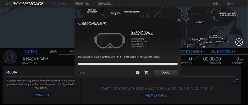 L’utilisation des fonctions du masque commence par la création d’un compte sur le service en ligne appelé « Recon Engage ». Une opération simple et rapide. Les éventuelles mises à jour du masque passeront d’ailleurs par la connexion au PC en USB.