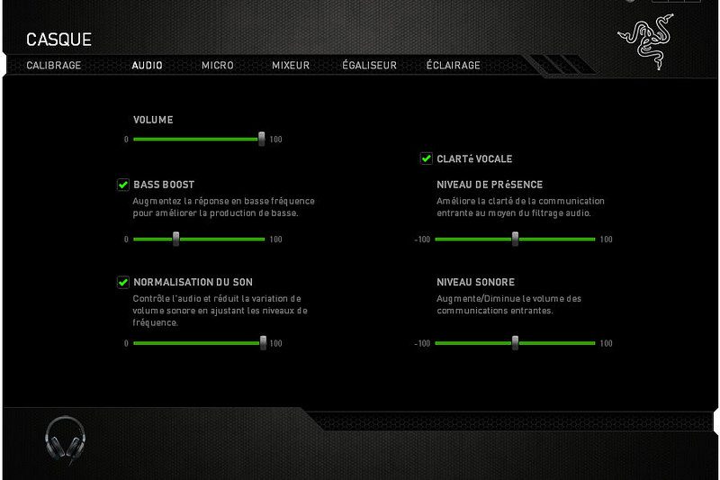La spatialisation manque toujours d’un peu de justesse et d’un zest de précision. La reproduction logicielle de l’effet 7.1, elle, est convaincante et se règle finement par l’intermédiaire du pilote Razer Synapse 2.0 à télécharger sur le site de la marque. Notez que le casque fonctionne en stéréo sans le pilote mais donne tout de même de bons résultats.