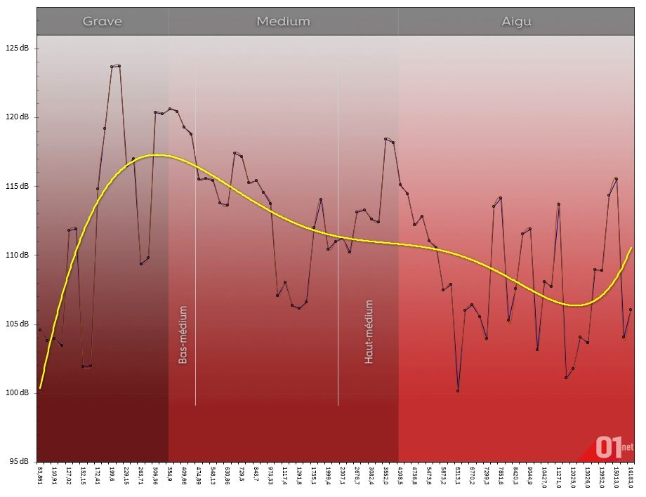Ainsi, dans un morceau de jazz-rock, les coups de batterie deviennent trop présents. Le déséquilibre s’accentue si on pousse le volume. Il est donc conseillé de rester près de l’enceinte et de mettre un niveau sonore normal pour obtenir un son un peu mieux équilibré. N’hésitez pas à la placer en hauteur pour bénéficier des avantages du radiateur passif.