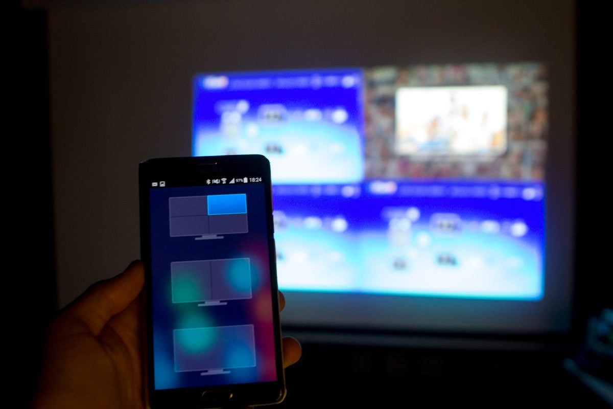 Celle-ci présente l’avantage d’être plutôt bien faite et de faciliter la diffusion de photos, vidéos et documents de travail. Mieux encore, il est possible d’étendre l’affichage sans fil de votre Mac ou PC toujours via l’application EZCast. Décernons même un « coup de cœur » à la fonction multi-écrans qui permet de diviser en 2 ou en 4 parties l’écran géant projeté par le Q6 pour le partager avec autant d’utilisateurs. Cette fonction sera plutôt utilisée par les professionnels, qui apprécieront d’ailleurs le petit format du Q6. A noter que le Qumi Q6 peut également devenir un hotspot Wi-Fi. Pour cela, il suffit de le connecter à un réseau « maître » (votre box ADSL, par exemple) pour que la connexion soit automatiquement partagée avec d’autres utilisateurs.