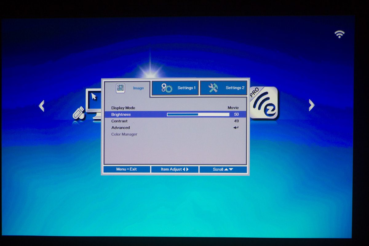 Il est par ailleurs possible d’affiner les réglages de l’image via les menus du Qumi Q6, mais certains paramètres nous ont paru n’avoir que peu d’influence sur la qualité de l’image. En effet, bien qu’on retrouve des fonctions de réglages avancés, permettant d’intervenir sur la netteté de l’image, le Gamma ou la correction de chaque couleur (rouge, vert, bleu), le fait d’agir sur ces paramètres ne se voit pas de manière flagrante à l’image. Il est évidemment possible d’y aller franchement, en augmentant ou diminuant sérieusement une couleur, mais le rendu global en prend un coup. Finalement, on se contente du mode cinéma, qui à faire varier de temps en temps la température des couleurs (chaud, normal, froid) pour compenser, par exemple, un rendu trop rouge sans pour autant trop dégrader les autres couleurs.