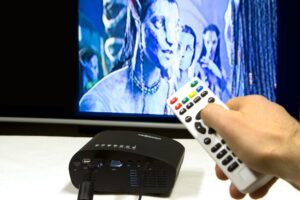 En revanche, comme c’est souvent le cas avec ces petits vidéoprojecteurs, l’ergonomie de la toute petite télécommande laisse un peu à désirer.