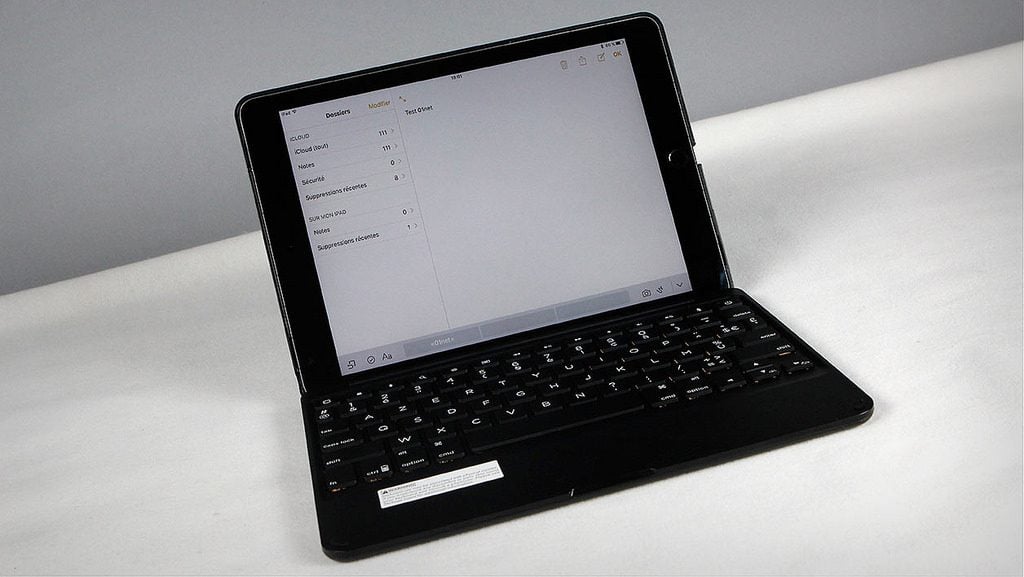 Il faudra donc activer le Bluetooth sur l’iPad Pro, jumeler le clavier – ce qui se fait sans encombre – et recharger le clavier par ailleurs grâce à un cable microUSB, judicieusement fourni avec le Folio. Nous n’avons pas réussi à décharger la batterie de cette coque-clavier, mais Zagg indique une autonomie de trois mois environ en utilisation normale.