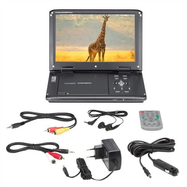 Livré avec tout un jeu d'accessoires, ce lecteur de DVD portable se