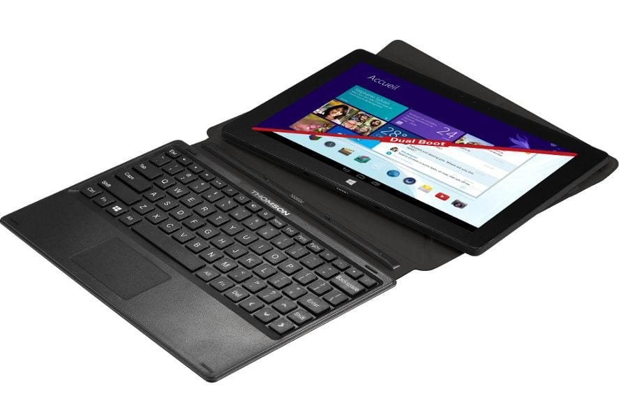Le THBK-1 est un petit PC portable 2-en-1 (moitié tablette, moitié PC) signé Thomson. Il embarque les derniers composants Intel à la mode (Bay Trail) mais, aussi, Windows 8.1 et Android 4.2 afin de varier les plaisirs, les applis et les usages.