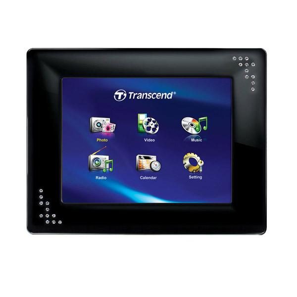 Outre son écran de 8 pouces et ses 2 Go de mémoire interne, ce cadre Transcend a un design élégant, noir laqué avec des (trucs) brillants dans les coins. Il offre également des fonctions de lecteur multimédia (MP3, Mpeg-4), radio et horloge avec alarme.