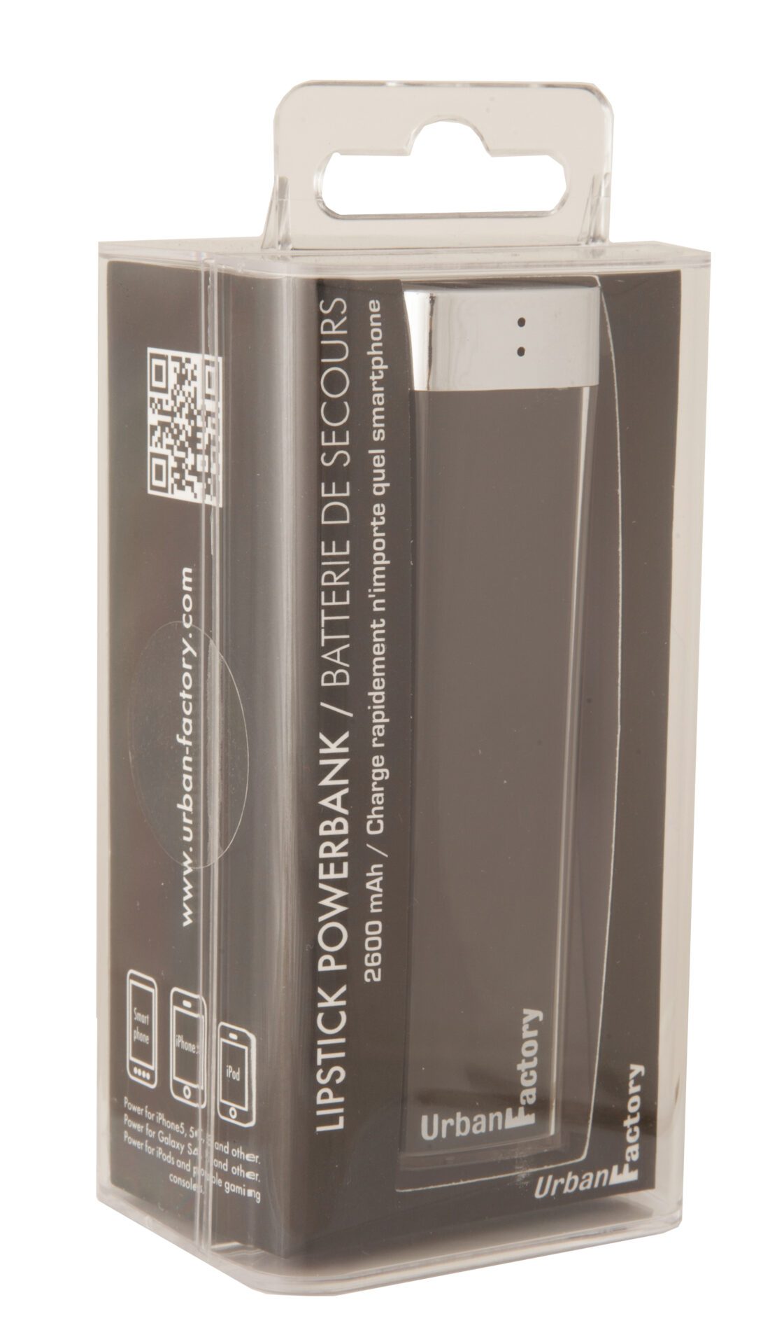 Urban Factory Lipstick, Noir, Universel, Micro-USB, 2600 mAh, USB, 5 V