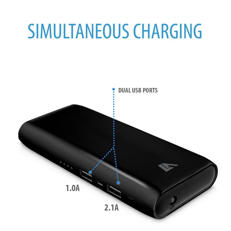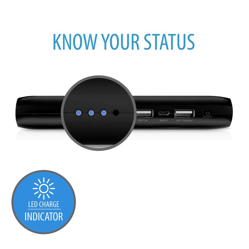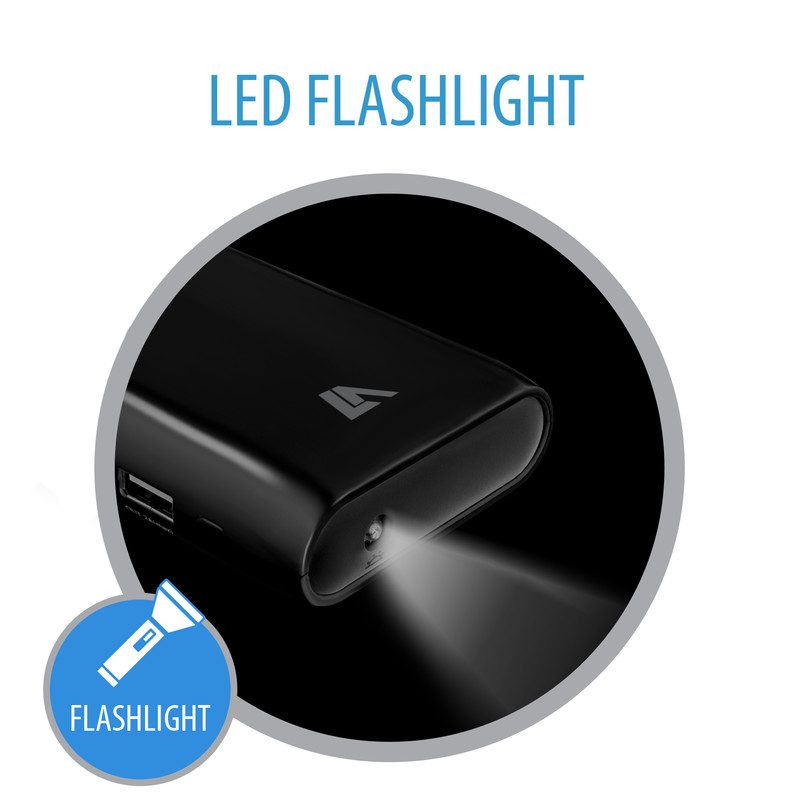 | Autres | Nombre d'appareils connectés simultanément (max): 2, Couleur du produit: Noir, Lampe de poche intégrée: Oui, Voyants: Oui, Ports de sortie USB A: 2, Ports de sortie USB B: Micro-USB, Connecteur Micro-USB: Oui, Technologie batterie: Lithium-Ion (Li-Ion), Source de chargement: USB, Tension des piles: 3,7 V, Dispositifs de protection électrique: Surcharge, Largeur du colis: 107 mm, Profondeur du colis: 203 mm, Hauteur du colis: 28 mm, Poids du paquet: 363 g, Conformité RoHS: Oui, Certification: FCC, CE, Forme: Rectangle, Temps de charge: 8 h, Pays d'origine: Chine, Nombre de cellules de batterie: 5, Câbles inclus: Micro-USB, Manuel d'utilisation: Oui |