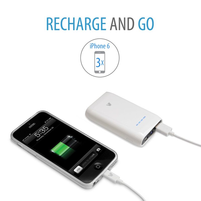 V7 V7 Chargeur portatif 6600mAh USB, Blanc, MP3, MP4, PDA, Consoles portables, Haut-parleur portable, Smartphone, Smartwatch, Tablette, Micro-USB, Lithium-Ion (Li-Ion), 6600 mAh, USB