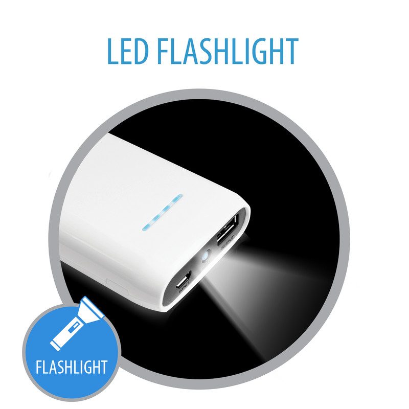 | Autres | Nombre d'appareils connectés simultanément (max): 1, Couleur: Blanc, Lampe de poche intégrée: Oui, Voyants: Oui, Ports de sortie USB A: 1, Ports de sortie USB B: Micro-USB, Technologie batterie: Lithium-Ion (Li-Ion), Source de chargement: USB, Nombre de cycles de chargement: 300, Tension des piles: 5 V, Courant de sortie: 2,1 A, Conformité RoHS: Oui, Certification: FCC, CE, Forme: Rectangle, Temps de charge: 8 h, Nombre de cellules de batterie: 3, Câbles inclus: Micro-USB, Manuel d'utilisation: Oui |