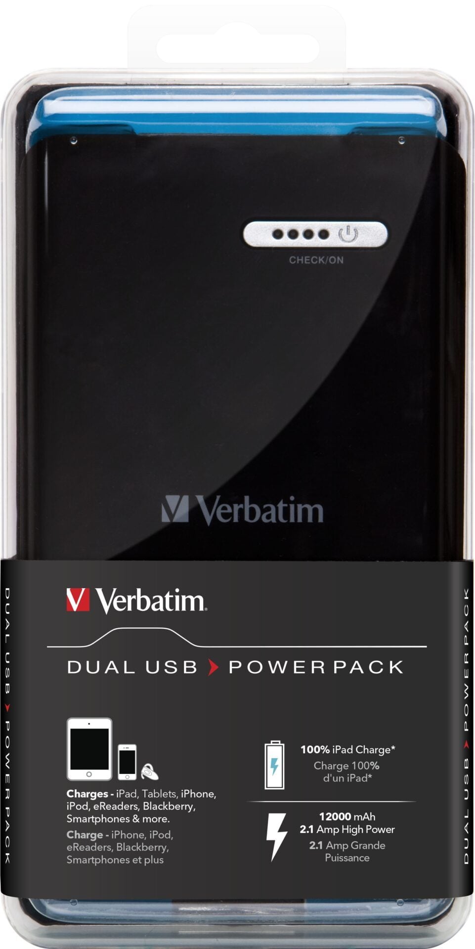 Verbatim Power Pack portable Dual USB 12 000 mAh, Noir, Universel, Lithium-Ion (Li-Ion), 12000 mAh, USB, 3,7 V