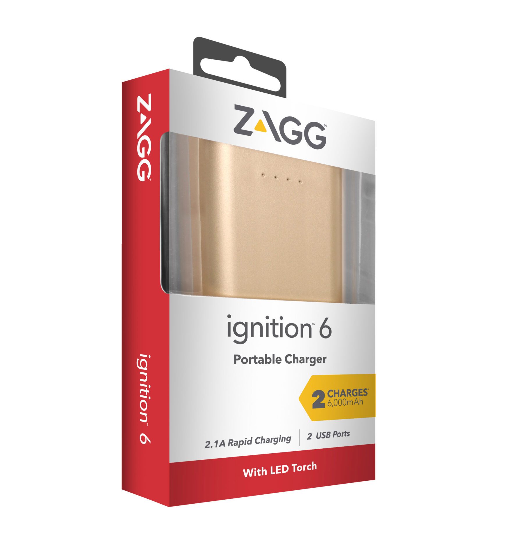 Zagg Ignition 6, Or, Universel, 6000 mAh, Secteur, USB, 5 V, 2,1 A