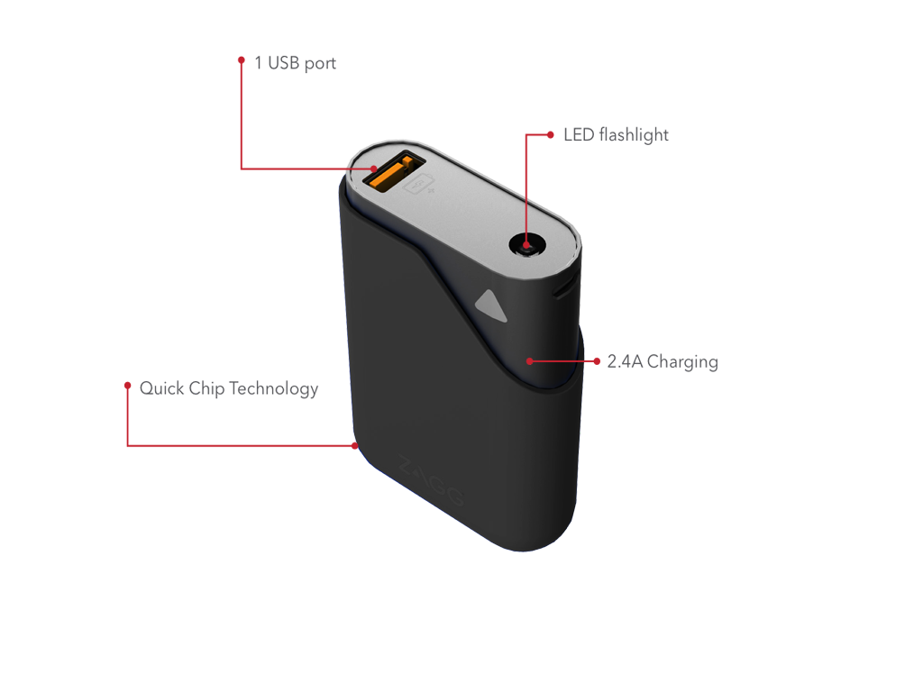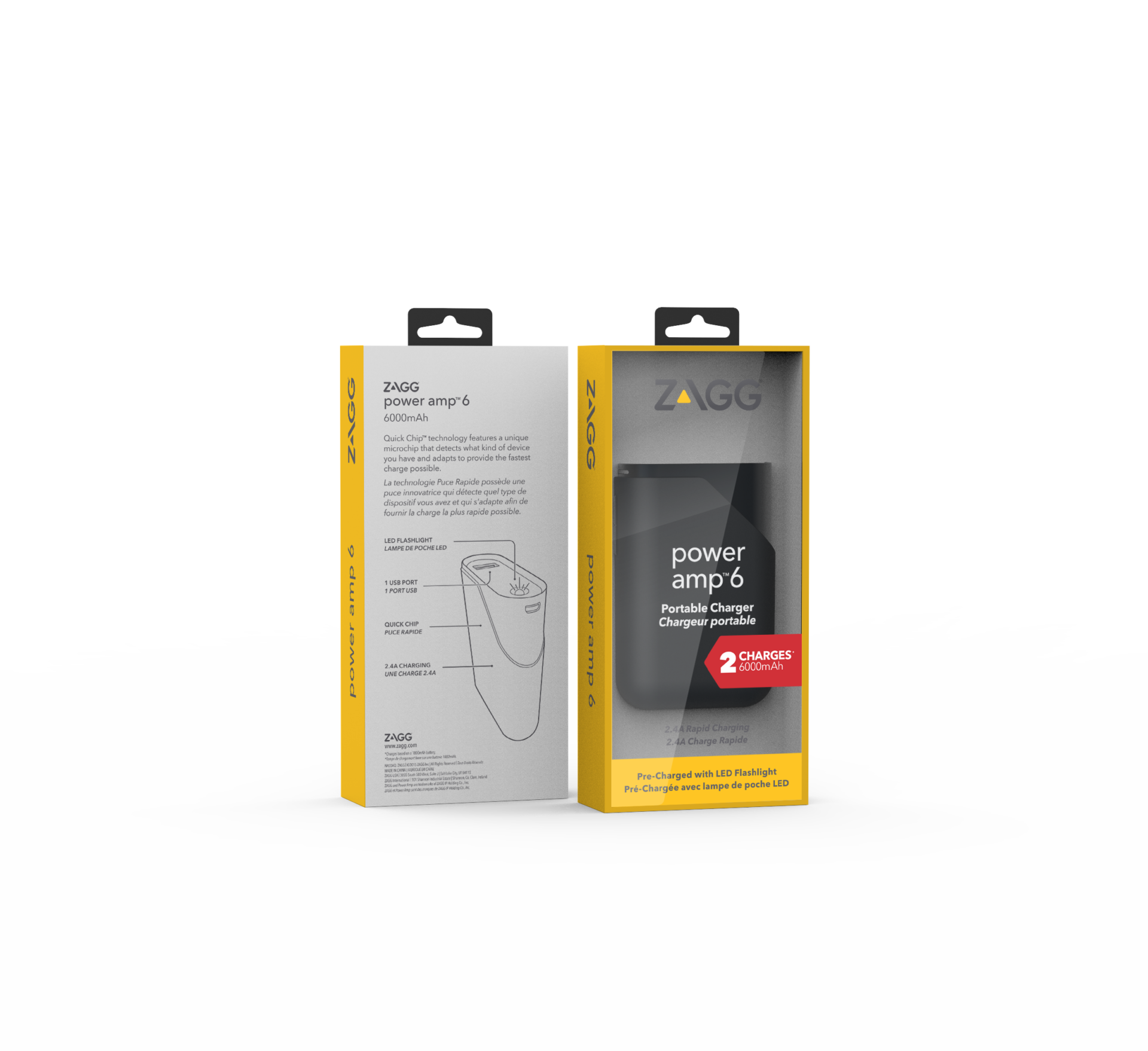 ZAGG Power Amp 6, Noir, MP3, MP4, Smartphone, Tablette, Apple iPhone 6s Apple iPhone 5s Apple iPhone SE Apple iPhone 6s Plus Apple iPhone 6 Plus Apple..., 6000 mAh, USB, 2,4 A