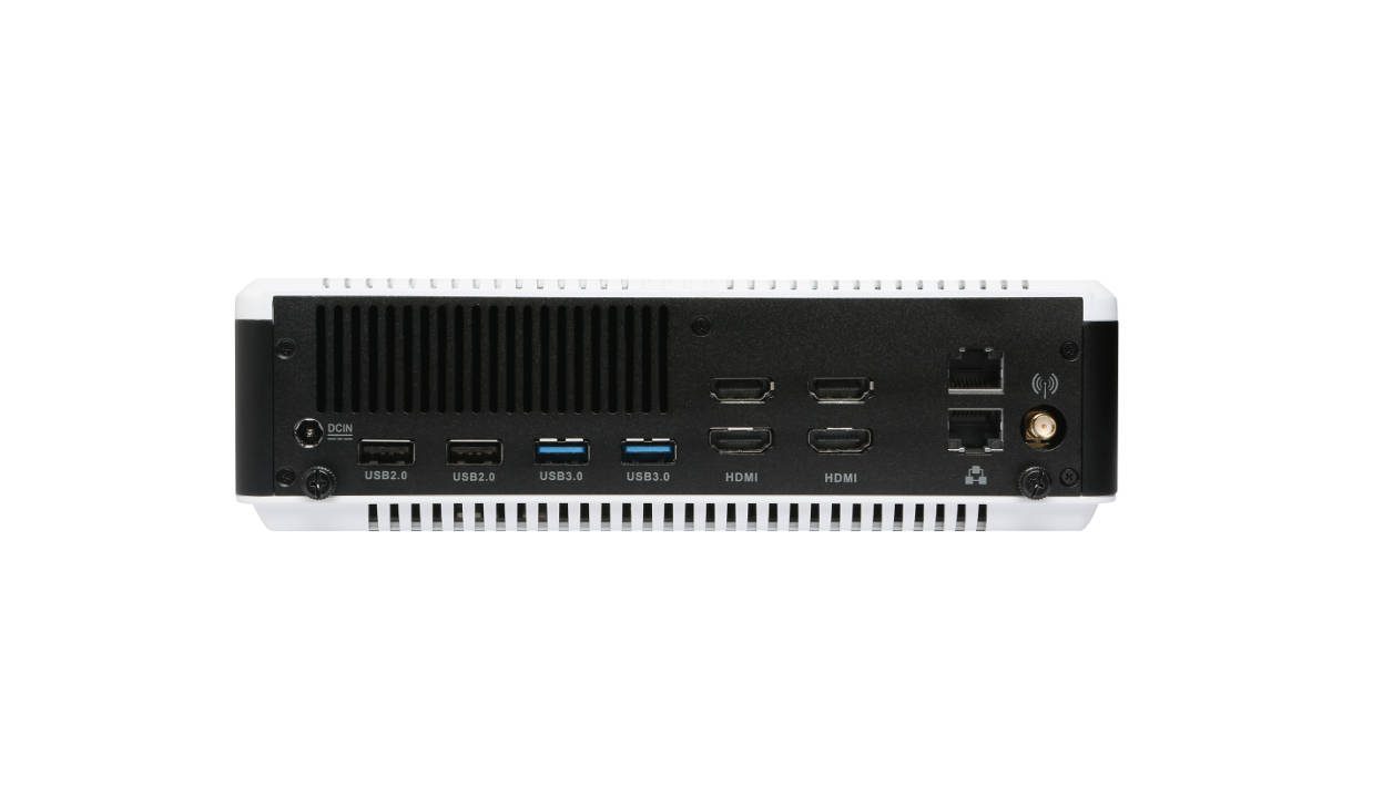Le panel de connectiques, lui, se diversifie, occasionnant quelques petits changements sur le boîtier (21 x 20,3 x 6,22 cm). Réparties entre le dos, les flancs et la face avant, se trouvent 4 sorties vidéo HDMI 2.0 (supportant la 4K à 60 Hz) et 6 prises USB dont trois 3.0 classiques, 2 à la norme 2.0 et 1 de Type-C. Outre la sortie stéréo et l’entrée micro, il y a également, en façade, un lecteur de carte SD, intégrant l’un des USB 3.0.